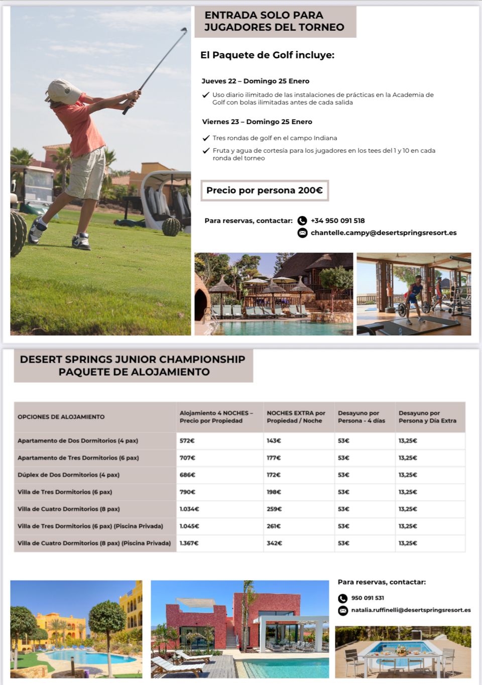Del 22 al 25 de Enero 2026 en Desert Springs se va a celebrar un torneo junior de alto nivel stroke play individual de 54 hoyos